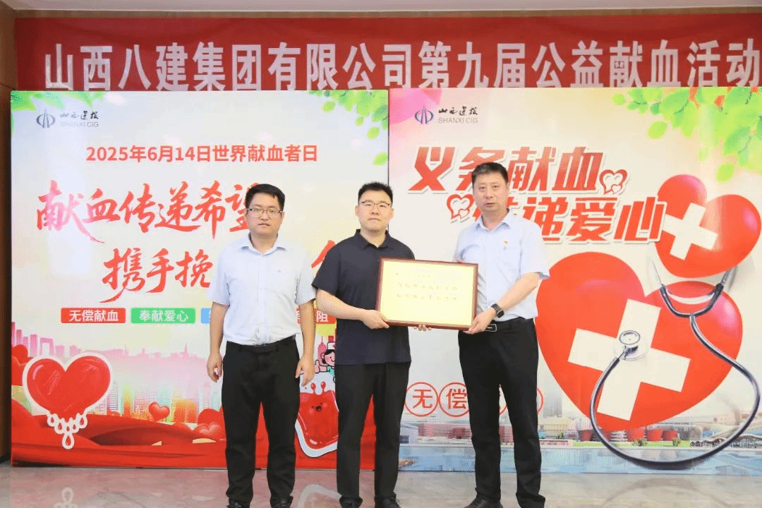 八建集團開展第九屆公益獻血活動。活動現場,干部職工積極響應,在專業醫護人員的指導下,有序完成血壓測量、血樣采集等流程。最終27人成功獻血9050毫升。太原市血液中心向集團贈送牌匾,對集團長期支持獻血事業表示感謝。