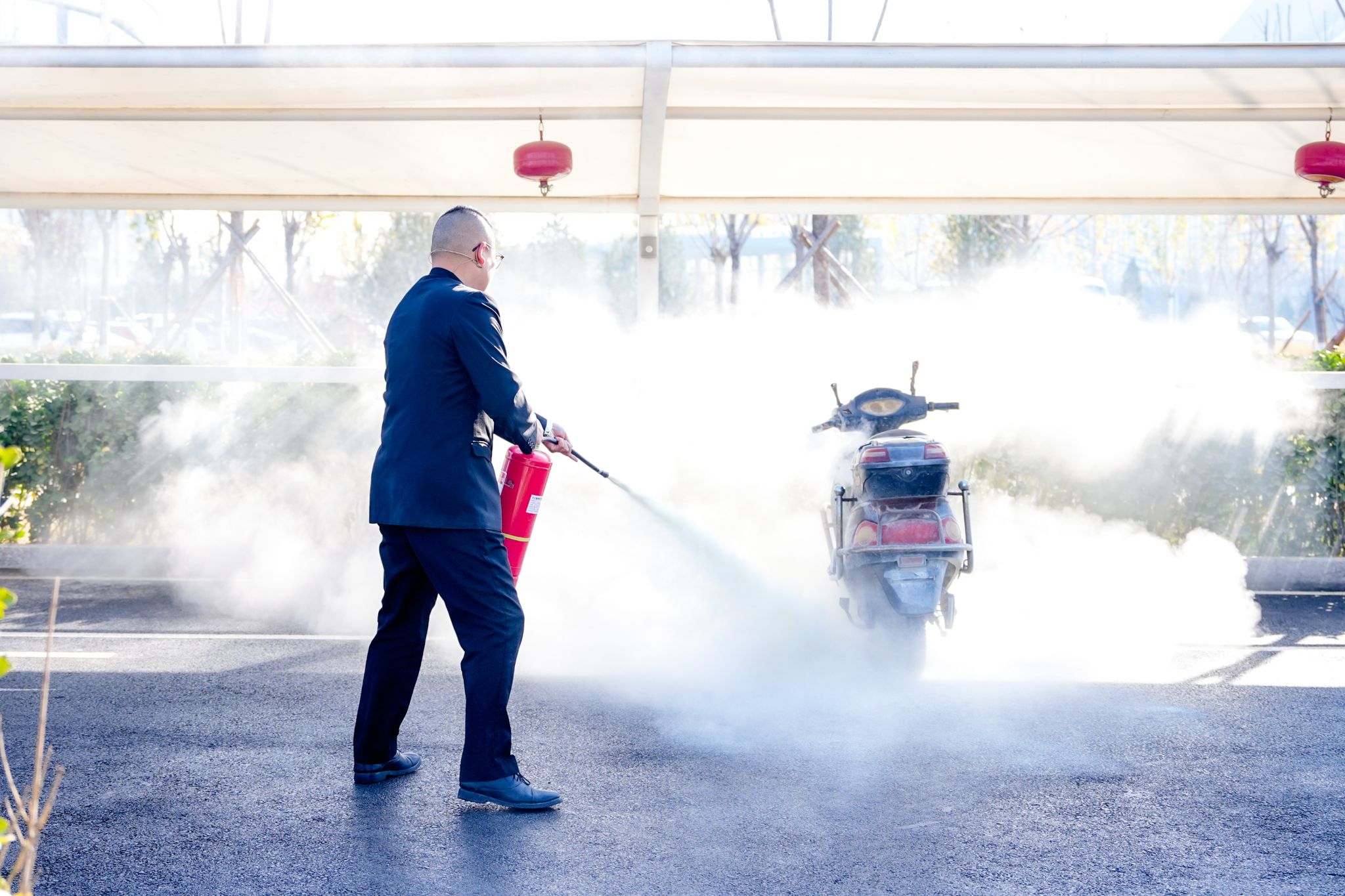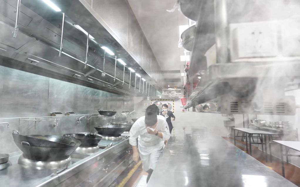 在“電動自行車起火”演練中,巡查人員嚴格執(zhí)行“一撲、二按、三報告”的處置原則,第一時間使用滅火器進行初期撲救并觸發(fā)手動報警,展現(xiàn)了火情發(fā)現(xiàn)與上報環(huán)節(jié)的規(guī)范性和及時性;在“廚房油鍋著火”科目中,廚房安素(ANSUL)自動滅火系統(tǒng)在火勢擴大前迅速啟動,自動完成滅火劑噴灑與燃氣切斷,充分體現(xiàn)了“人防”與“技防”相結(jié)合在控制火情中的關(guān)鍵作用;在“酒店客房火災”演練中,從煙感報警、火情確認、預案啟動,到人員疏散、傷員救援、119報警及外部聯(lián)動,整個流程環(huán)環(huán)相扣、銜接有序,充分展示了多部門在復雜火情中協(xié)同作戰(zhàn)、高效聯(lián)動的實戰(zhàn)水平。演練全面模擬真實火情場景,有效檢驗了集團在多種突發(fā)火情下的應急處置機制,進一步錘煉了多部門協(xié)同作戰(zhàn)與快速響應的綜合能力。