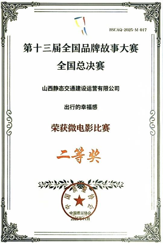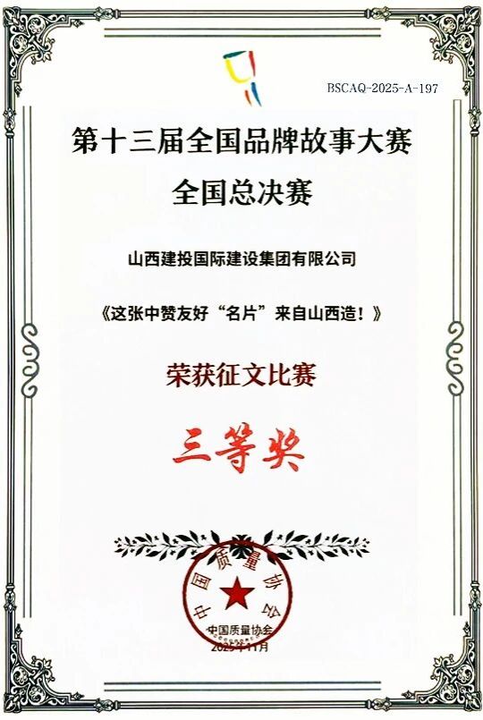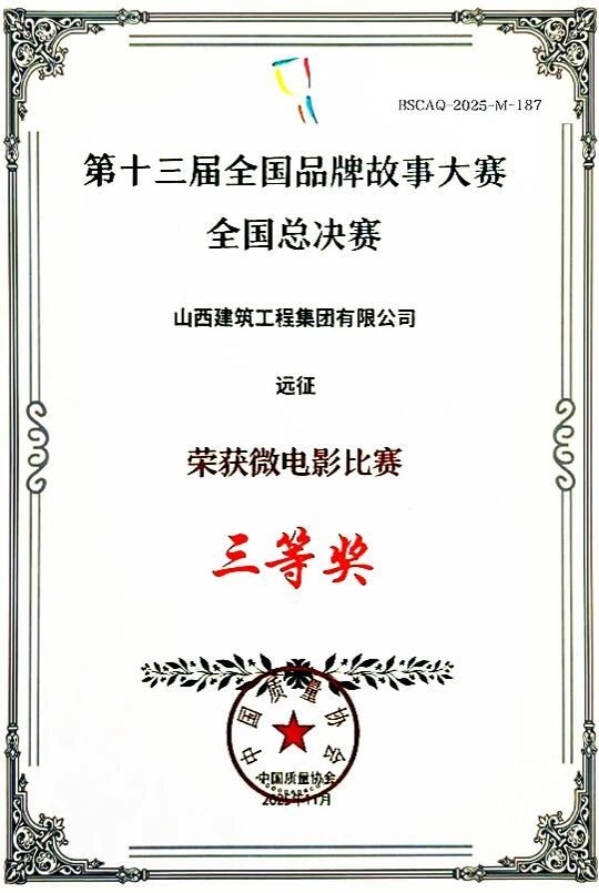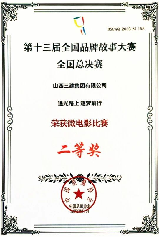 作為貫徹落實(shí)《質(zhì)量強(qiáng)國建設(shè)綱要》《關(guān)于新時(shí)代推進(jìn)品牌建設(shè)的指導(dǎo)意見》的全國性賽事,第十三屆全國品牌故事大賽匯聚全國優(yōu)秀企業(yè)力量,旨在宣傳展示中國企業(yè)全面貫徹新發(fā)展理念、堅(jiān)持高質(zhì)量可持續(xù)發(fā)展、發(fā)揮品牌引領(lǐng)作用的經(jīng)驗(yàn)和故事,是彰顯企業(yè)品牌價(jià)值的重要平臺,在國內(nèi)品牌領(lǐng)域具有高度公信力與廣泛影響力。大賽包括演講比賽、征文比賽、微電影比賽和短視頻比賽四種形式,包含科技創(chuàng)新、消費(fèi)升級、卓越質(zhì)量、責(zé)任擔(dān)當(dāng)、文化傳承、品牌出海六個(gè)子主題。經(jīng)過決賽評選,三建集團(tuán)《追光路上 逐夢前行》、靜態(tài)交通公司《出行的幸福感》榮獲微電影比賽二等獎(jiǎng),建工集團(tuán)《遠(yuǎn)征》榮獲微電影比賽三等獎(jiǎng),國際建設(shè)集團(tuán)《這張中贊友好“名片”來自山西造!》榮獲征文比賽三等獎(jiǎng)。
