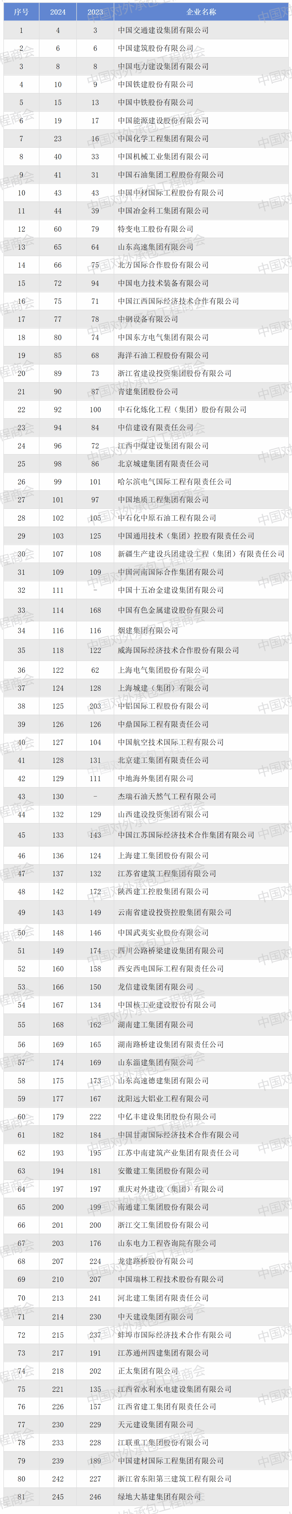 2024年度ENR“全球最大250家國際承包商”上榜中國企業名單