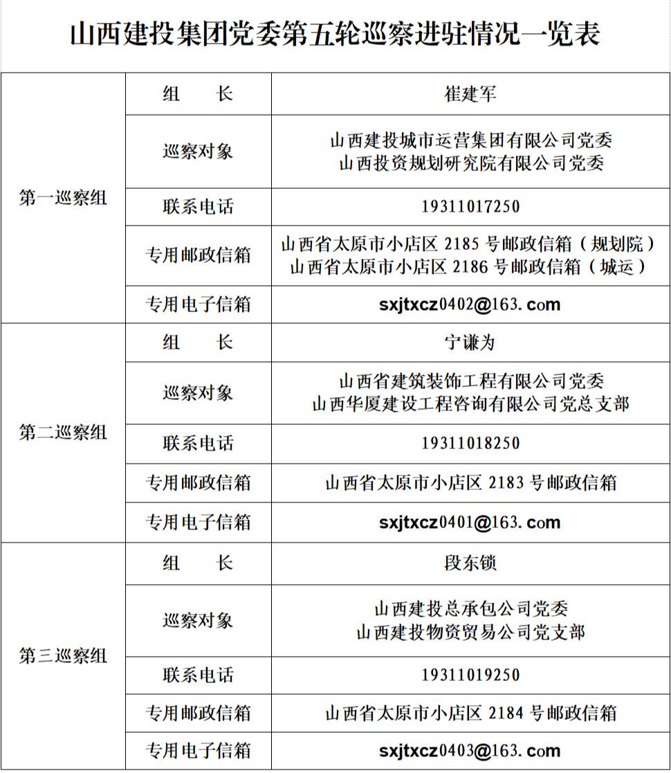 本輪巡察3個巡察組將在被巡察黨組織進駐2個月左右,期間設立專門值班電話和郵政信箱,巡察組受理電話時間為工作日上午08:30—12:00,下午14:30—18:00。巡察組主要受理反映被巡察黨組織領導班子及其成員、下一級黨組織主要負責人和重點崗位負責人問題的來信來電來訪,重點是關于違反政治紀律、組織紀律、廉潔紀律、群眾紀律、工作紀律和生活紀律等方面的舉報和反映。其他不屬于巡察受理范圍的問題反映,將按規定由有關部門處理。巡察組受理信訪時間截止到2025年1月3日。