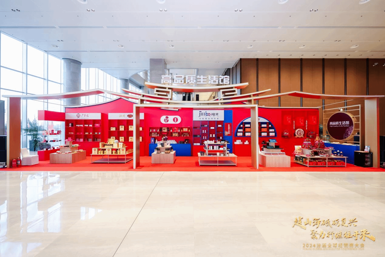 會議中心一層序廳空間設置的“山西高品質生活展館”尤為引人注目,旨在通過一系列高端、精致的產品展示,向全球經銷商和參觀者展現山西獨特的文化底蘊和高品質生活理念。