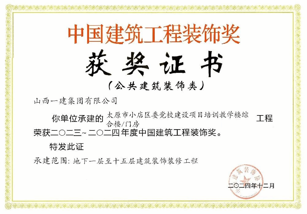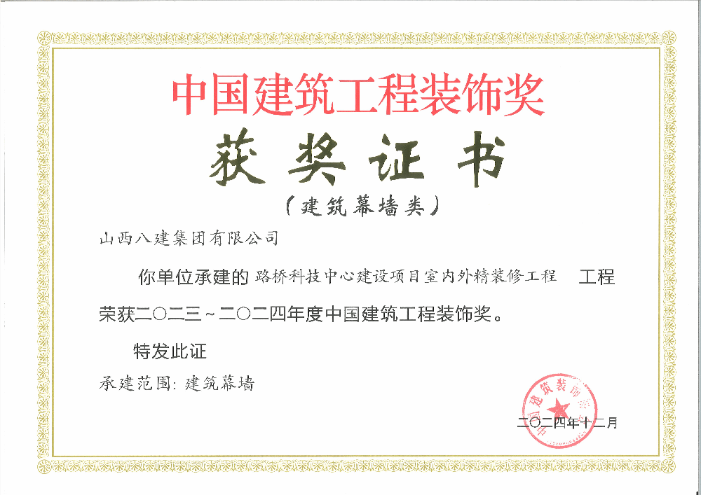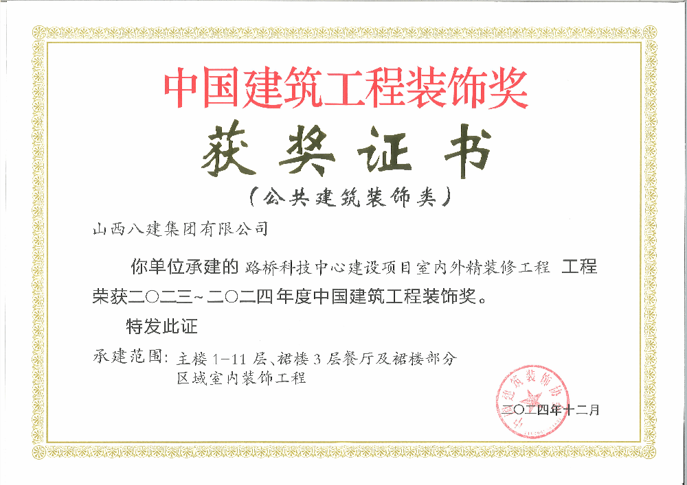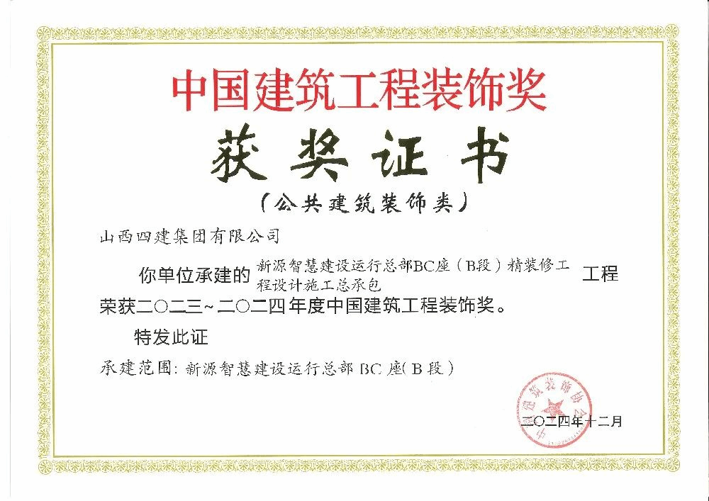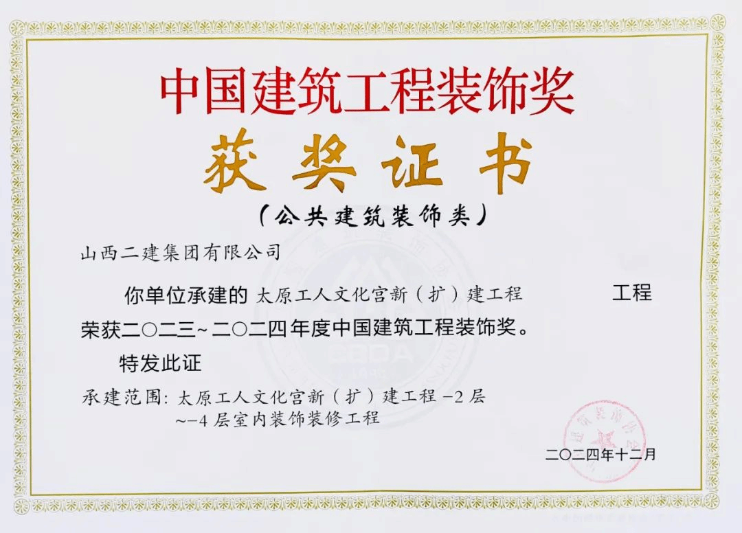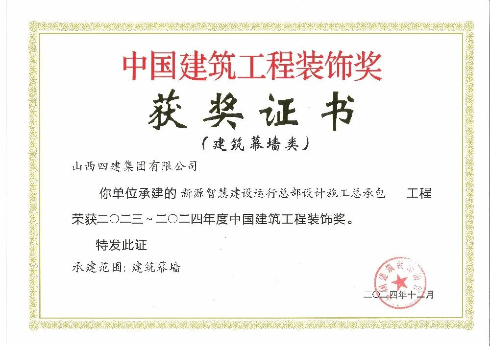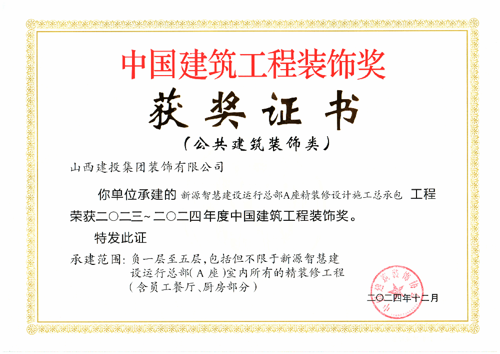 在中國建筑裝飾協會九屆四次理事會九屆六次常務理事會暨中國建筑裝飾協會成立40周年大會上,建投集團承建的13個項目榮獲2023年度中國建筑工程裝飾獎。此外,在中國化工建設企業協會公布的2024年化工建設工程質量評價結果(化學工業優質工程獎)中建投集團承建的3個項目榜上有名。