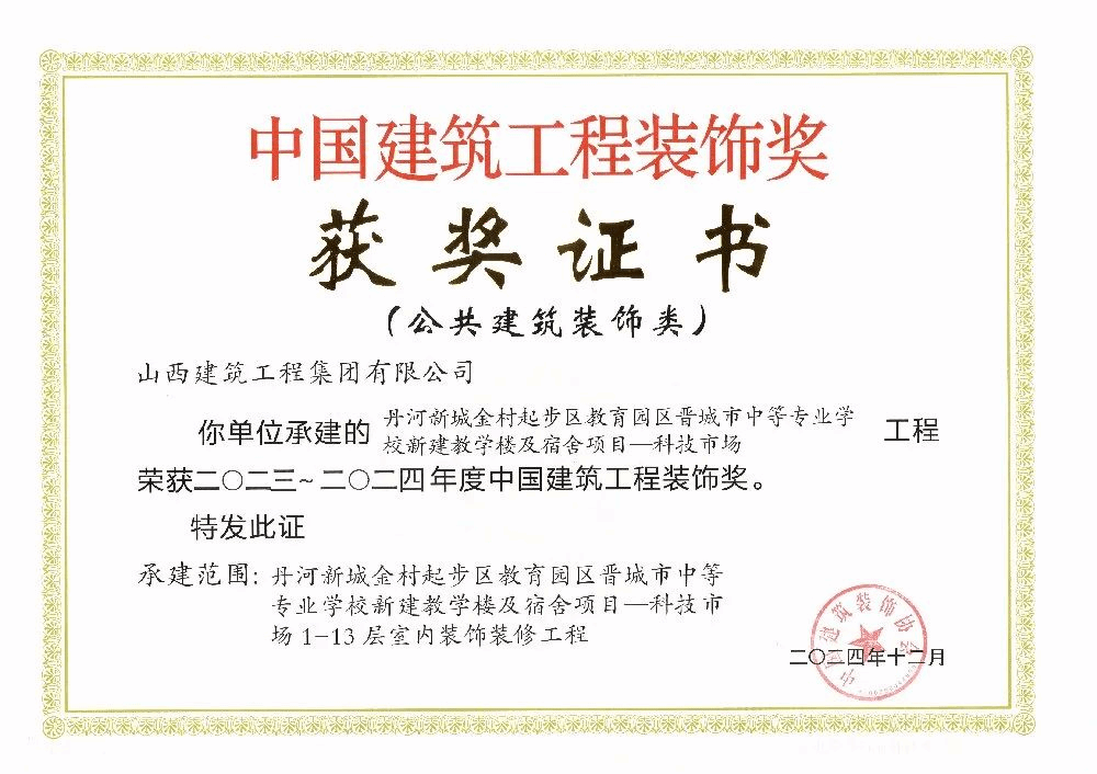 丹河新城金村起步區教育園區晉城市中等專業學校新建教學樓及宿舍項目—科技市場項目是晉城首個3A級裝配式建筑,整體裝配率達92.5%。項目的建成,對晉城市新區投資建設、產業導入和運營管理具有重要意義。