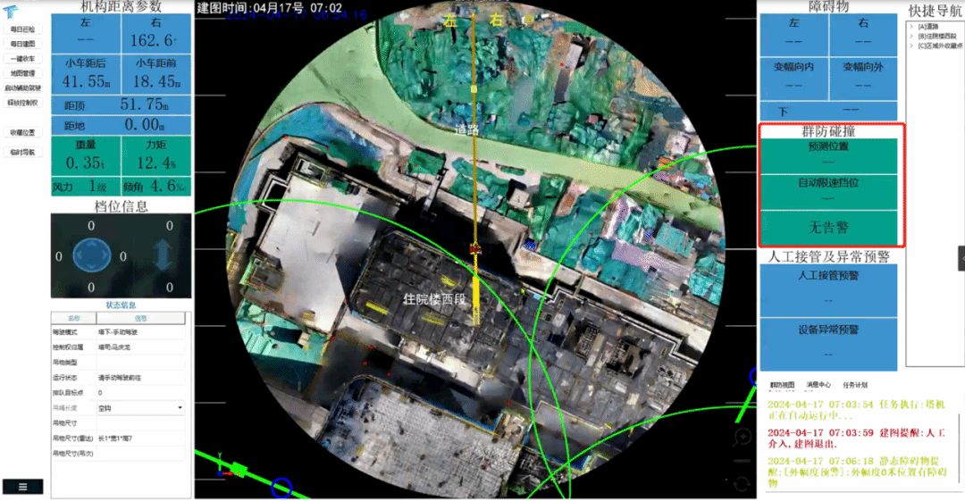 依托高精度激光雷達(dá)、傳感器、人工智能、物聯(lián)網(wǎng)、視覺(jué)重構(gòu)等,先進(jìn)設(shè)備與技術(shù)司機(jī)只需在地面上面對(duì)屏幕根據(jù)信息提示搖動(dòng)手柄就可使塔式起重機(jī)精準(zhǔn)流暢地將建筑材料吊裝至指定施工點(diǎn)位。
