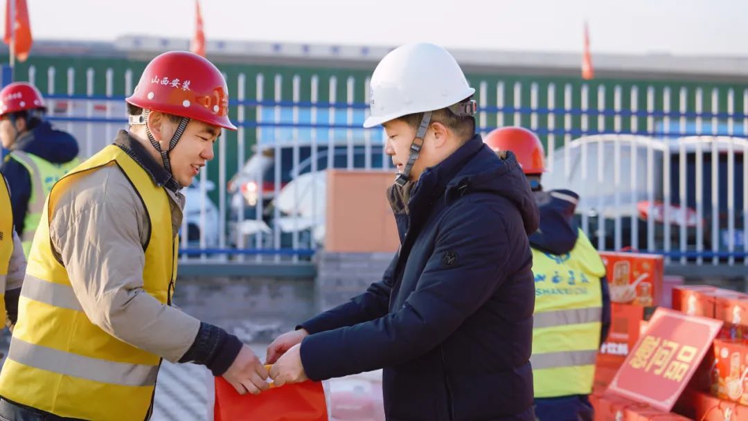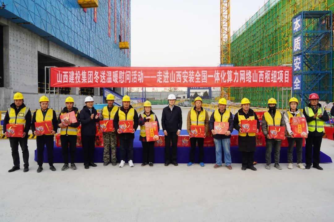 在全國一體化算力網絡山西樞紐項目,杜銳為奮戰在嚴寒中的項目員工和勞務人員送去關懷與溫暖。