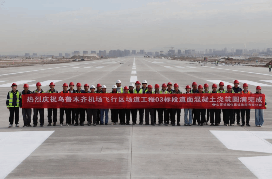 近日,山西太原武宿國際機場第二跑道全線貫通。該項目是國家民航局“十四五”重點項目,跑道由山西建投機械化集團承建,建設標準為長3600米、寬45米,并配套建設相應的滑行道系統。項目團隊克服了不停航施工、地下管線復雜、地基處理難度大等困難,建設高峰期投入設備1000余臺(套),勞務作業人員902人,單日主材進貨量達13855噸,單日實現混凝土道面產量3100方,不斷刷新項目單日施工產值新紀錄,圓滿完成了百日攻堅會戰目標,并如期實現既定目標。