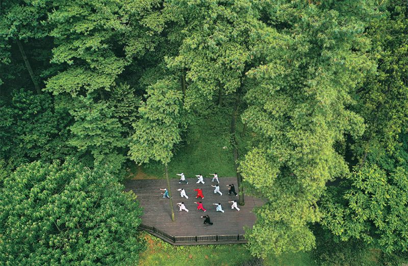 2022年以來,貴州省貴陽市以長坡嶺國家級森林公園為試點,建設貴州首個“林長制”主題公園,開展習近平生態文明思想、林長制政策、森林資源保護發展政策等宣傳,促進形成全社會愛林、護林、興林的良好氛圍。圖為2022年7月13日,市民在長坡嶺國家級森林公園里健身(無人機照片)。 新華社記者 楊文斌/攝