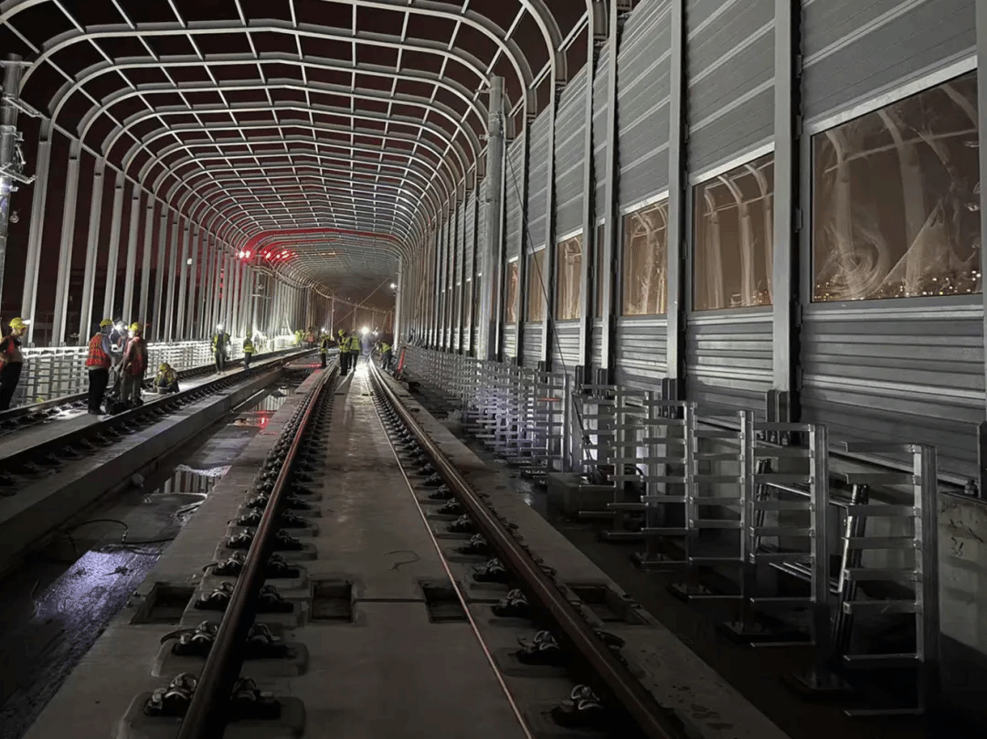 施工期間,項(xiàng)目團(tuán)隊靈活調(diào)整作業(yè)時段,嚴(yán)格遵守高溫、夜間安全施工要求,合理安排人員作息時間,同時科學(xué)排布施工計劃和工序,對吊裝、登高等作業(yè)進(jìn)行前置條件核查,對施工內(nèi)容進(jìn)行功能性和侵限風(fēng)險檢測,嚴(yán)把安全質(zhì)量關(guān),滿足要求后方可施工。最終按照節(jié)點(diǎn)完成區(qū)間照明點(diǎn)亮,射流風(fēng)機(jī)啟動,雨廢水泵房抽排、相關(guān)區(qū)域送電等各項(xiàng)功能,為列車上線熱滑提供了堅實(shí)保障。