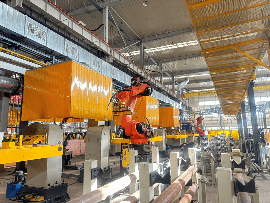工廠占地面積300.31畝,建筑面積90669.58平方米,以“綠色制造、智能制造、可持續制造”為核心理念打造現代化生產基地。不僅建有完備的智能化、數字化、自動化生產過程管理系統,在工藝方法與工藝裝備上均采用國內領先技術,形成了能源管理、環保管理及產品全生命周期管理的綠色體系。配備11條智能化生產線與150余臺工業機器人,關鍵裝備數控化率達100%,全部生產設備數控化率達84.1%,實現了產品從下料、組對、焊接、涂裝到轉運全流程制造環節的自動化、智能化、數字化,配備 4 條粉末涂裝生產線, 產品生產安全高效環保。