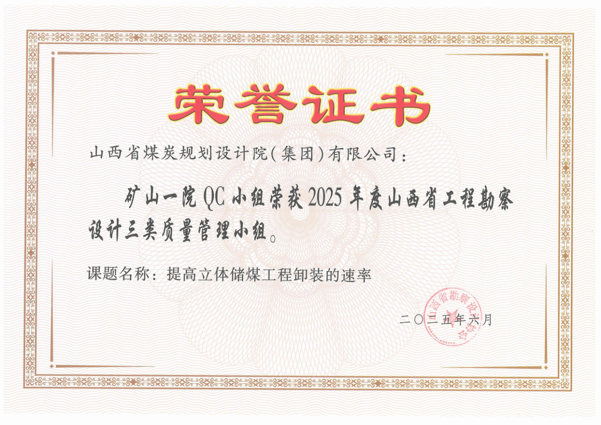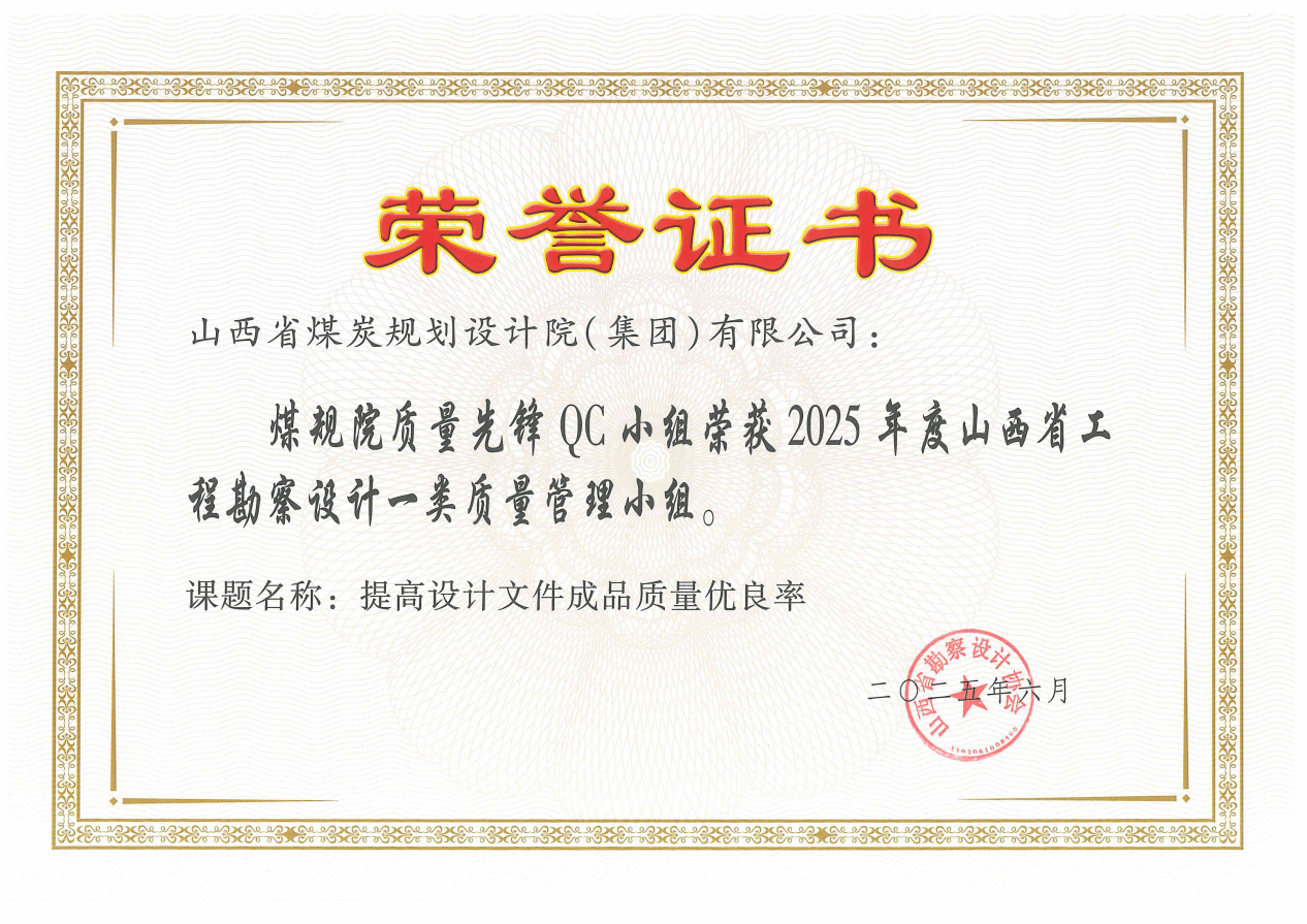 近日,2025年度山西省工程勘察設計質量管理小組活動成果評定結果揭曉,山西建投煤規院集團參評的“提高設計文件成品質量優良率”等4項QC小組活動成果脫穎而出,斬獲一等獎1項、二等獎1項、三等獎2項,以扎實的質量管控實力贏得行業認可。
