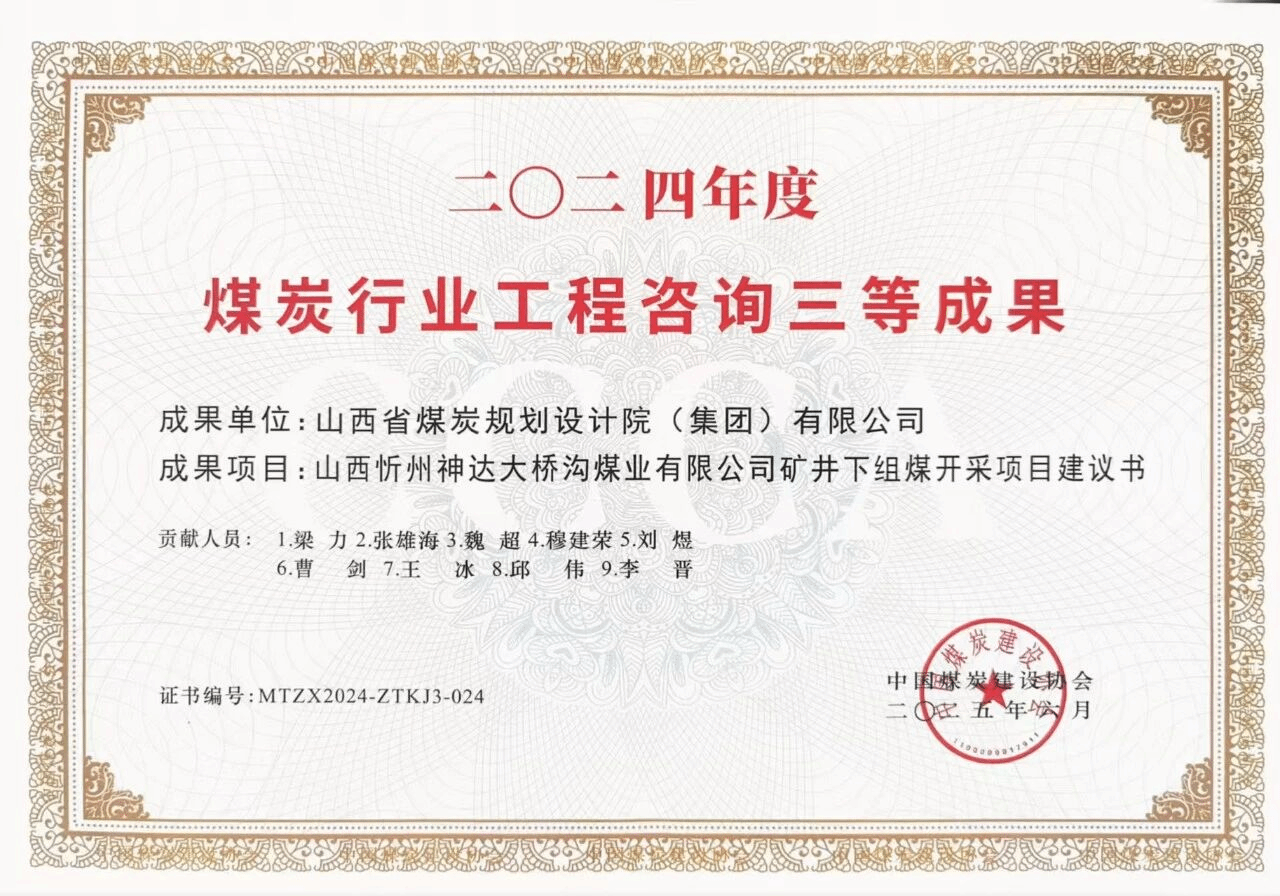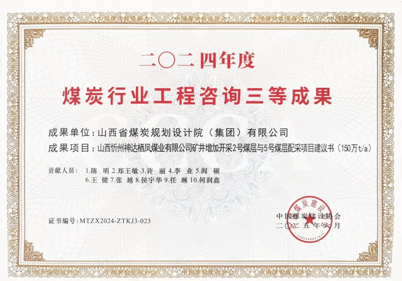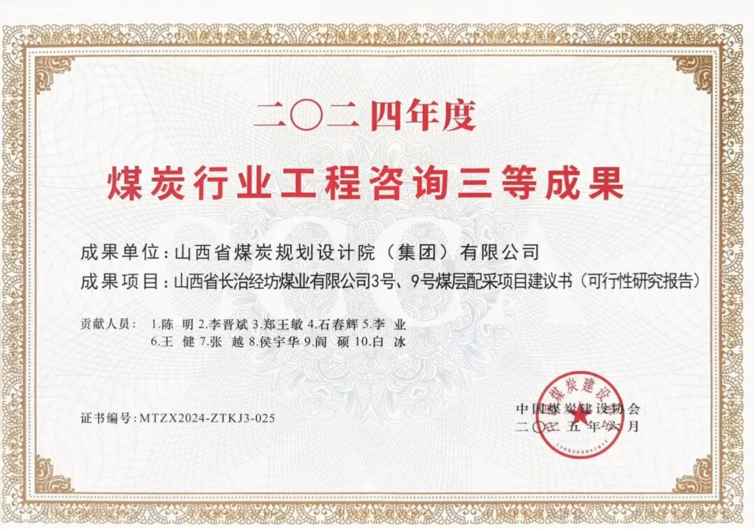 近日,中國煤炭建設協會公布2024年度煤炭行業優秀工程咨詢成果獲獎名單,山西建投煤規院集團斬獲四項煤炭行業(部級)工程咨詢三等成果獎。