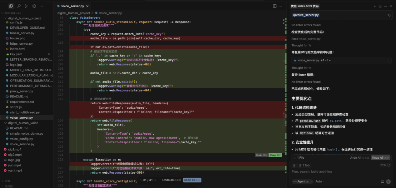 在企業(yè)數(shù)字人開發(fā)全流程中,公司創(chuàng)新性應用了人工智能大模型的標準化代碼生成能力,在確保系統(tǒng)架構、功能邏輯、源代碼等關鍵環(huán)節(jié)、技術自主可控的前提下,實現(xiàn)利用大模型進行企業(yè)數(shù)字人代碼開發(fā)的自動化編程、智能優(yōu)化調(diào)試及測試,使研發(fā)人員將工作重心從基礎代碼編寫轉向?qū)诵哪P图按a框架進行精細調(diào)優(yōu),這不僅顯著縮短了開發(fā)周期、提升了開發(fā)效率,更從根本上保障了底層技術的可靠性與先進性,為提升產(chǎn)品質(zhì)量奠定了堅實基礎。