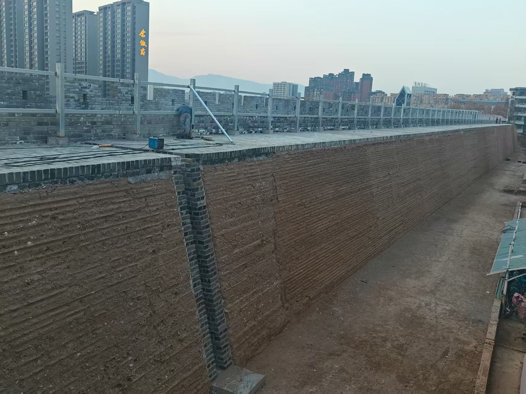 精準修復是項目的核心亮點。團隊用三維激光掃描技術為古墻進行“全面體檢”,精準捕捉病害數據,并創新采用了分層修復略:外城墻按夯土走勢修整為臺階狀,以2:8灰土包裹原夯土,既防凍融開裂又實現可逆剝離;內城墻用機磚背里搭配3:7潑灰泥砌筑,每隔1.23米插入生鐵片拉結,讓墻體擺脫對老夯土的依賴,自主穩固性大幅提升。