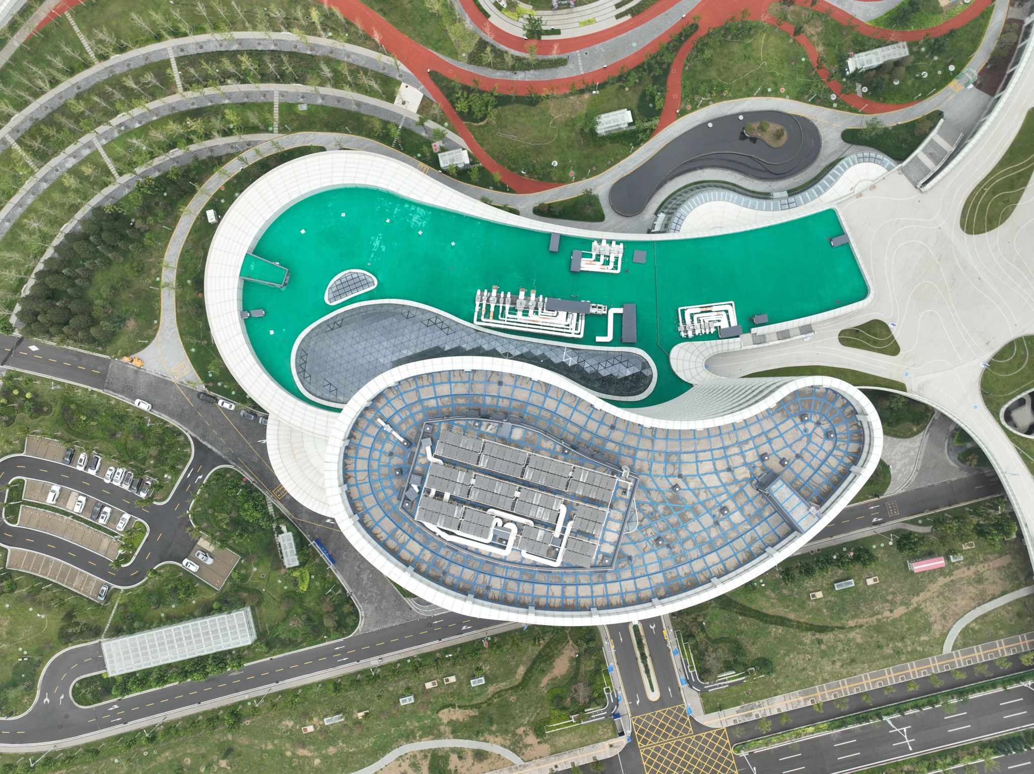節能與美學的雙重追求在項目中得到體現。通過優化幕墻立柱選型和玻璃配置,幕墻傳熱系數較設計要求進一步降低,節能性能提升15%。水滴形主體與異形飄帶的有機結合,配合740塊不同規格的采光頂玻璃,將建筑的靈動之美與自然光線巧妙融合,創造出光與影的交響。