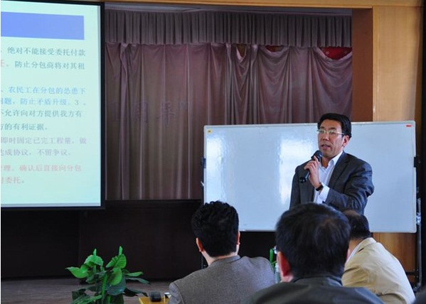 期間公司李煥文副總經(jīng)理、卲有信副總經(jīng)理就合同簽訂、涉外工程、工期延誤、取證等在管理過程中容易發(fā)生的法律糾紛,現(xiàn)場對我單位各級人員進行了深入的闡述和講解。