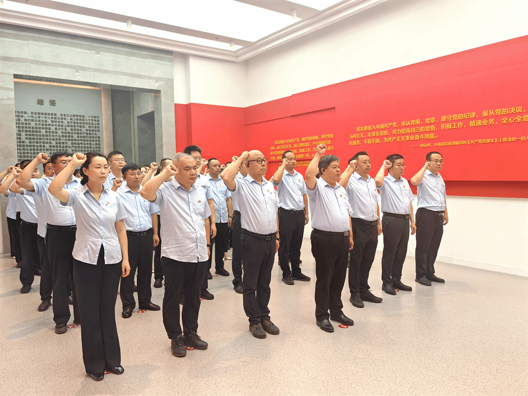 參觀結(jié)束后,黨員干部面對鮮紅黨旗重溫入黨誓詞。一句句鏗鏘有力的誓言,表達(dá)了大家對黨忠誠、嚴(yán)守紀(jì)律的堅定信念和決心。