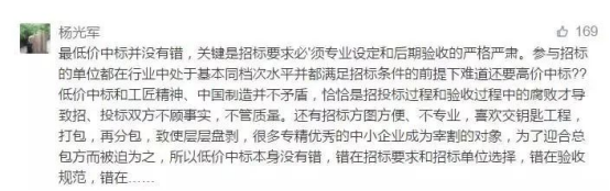 “最低價中標”在人民日報牽頭下成眾矢之的,建設領域更是深受其痛,廣大網友紛紛吐言。