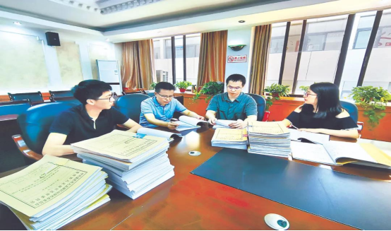 圖為九龍坡區(qū)紀(jì)委監(jiān)委案件審理室工作人員研究馮海軍案定性相關(guān)證據(jù)。向?qū)?攝