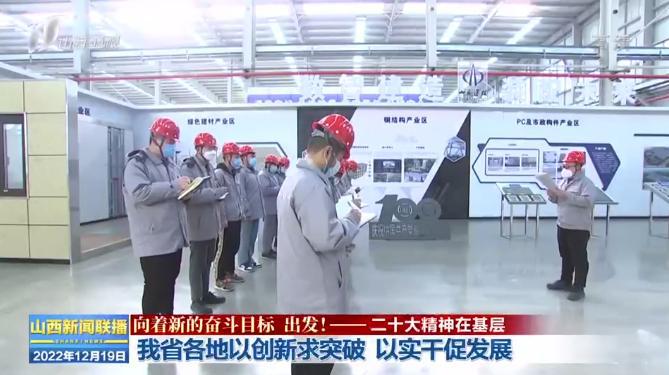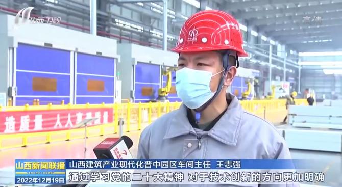 12月19日,山西衛視《山西新聞聯播》就山西建筑產業現代化晉中園區深入學習宣傳貫徹黨的二十大精神進車間、進班組,以創新求突破,以實干促發展,奮力沖刺全年生產任務進行報道。