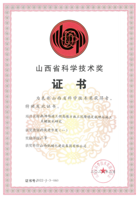 近日,山西建投機械化集團研究的《機場場道工程高填方施工沉降穩定機理及施工關鍵技術研究》項目斬獲山西省科學技術進步三等獎。