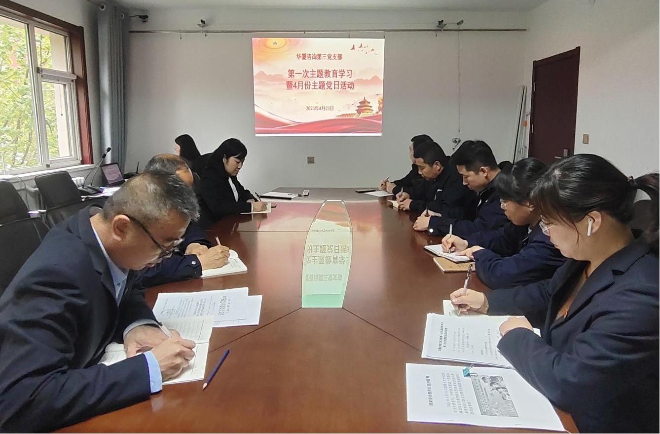 山西建投華廈咨詢公司黨總支學習貫徹習近平新時代中國特色社會主義思想主題教育工作部署會召開后,各黨支部迅速行動,認真學習貫徹習近平總書記重要講話精神和黨中央部署要求,強化理論武裝,深學細照篤行,推動主題教育深入開展。