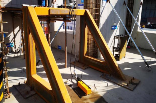 反力架由7根矩形冷彎空心型鋼組成,并對橫梁受力處進行了加強,以減少鋼材受力后的撓度及對實驗的影響。測試樣板間節點的抗彎承載力和滯回特性;研究豎向連接節點的破壞形態;驗證節點真實承載性能和檢驗工程質量。