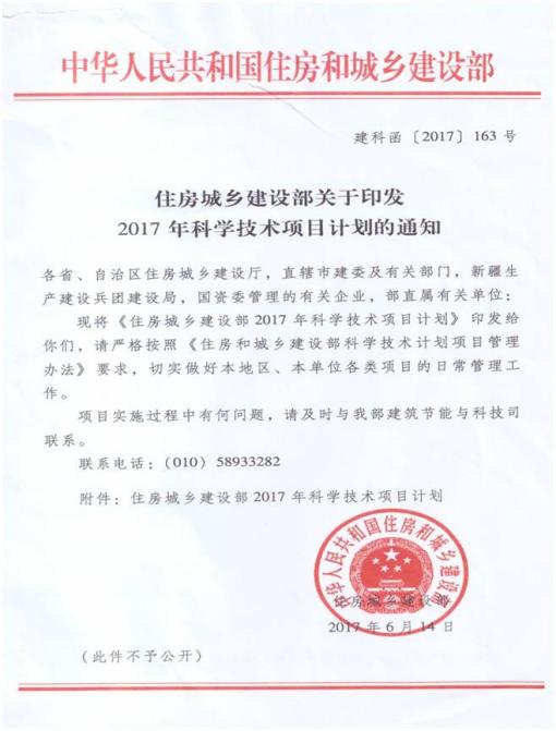 (1)科技項目:立項實施住建部科學技術計劃項目2項;合作實施住建部科學技術計劃項目1項。