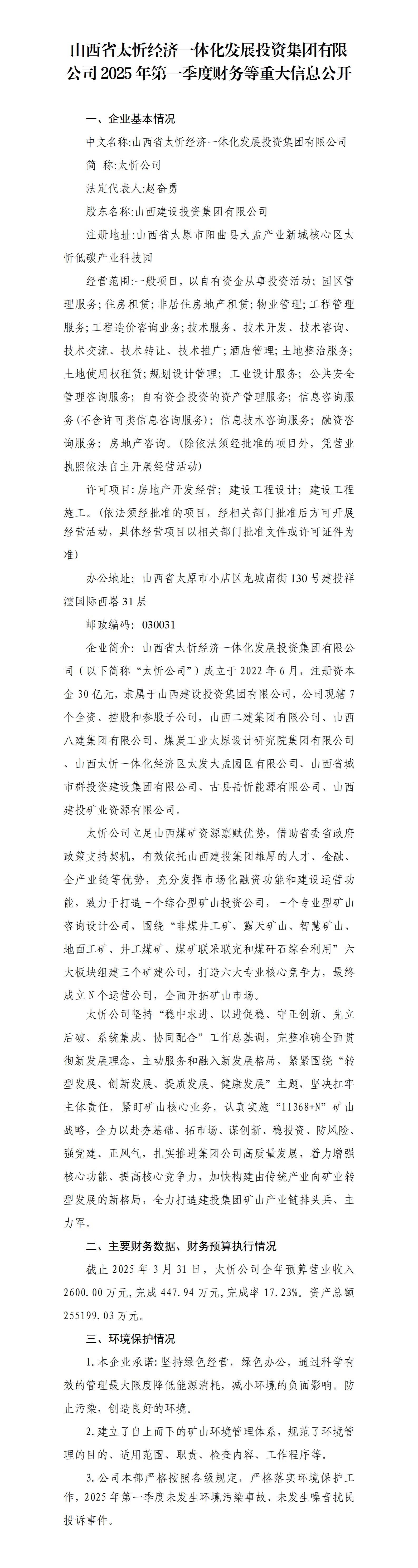 展望未來,山西建投將在省委省政府的正確領導下,進一步深化體制機制改革,持續(xù)創(chuàng)新商業(yè)模式,完善現代企業(yè)治理體系,深入推進內涵集約式發(fā)展,促進經營規(guī)模和經濟效益持續(xù)穩(wěn)健增長。
