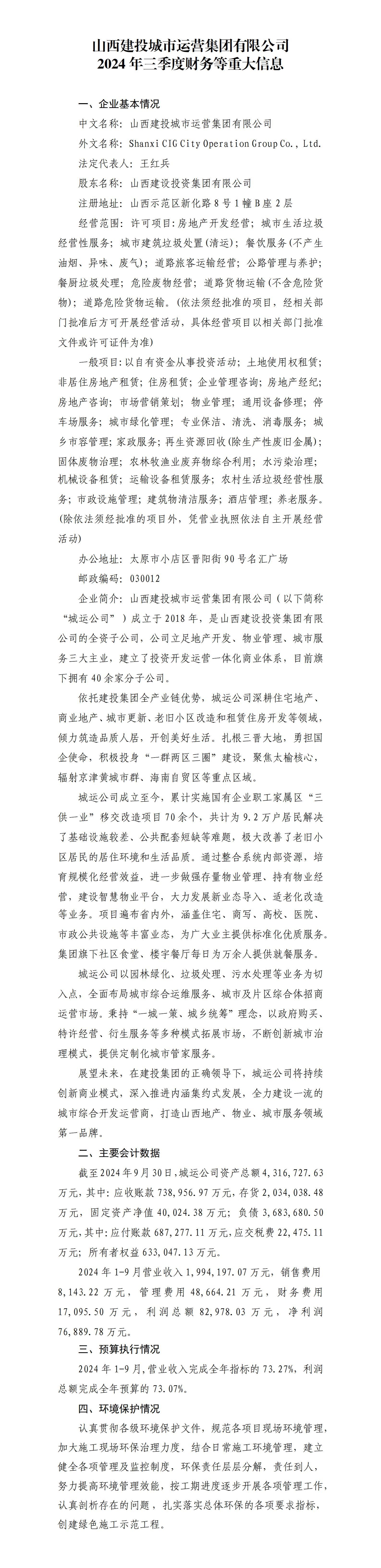展望未來,山西建投將在省委省政府的正確領(lǐng)導(dǎo)下,進(jìn)一步深化體制機制改革,持續(xù)創(chuàng)新商業(yè)模式,完善現(xiàn)代企業(yè)治理體系,深入推進(jìn)內(nèi)涵集約式發(fā)展,促進(jìn)經(jīng)營規(guī)模和經(jīng)濟效益持續(xù)穩(wěn)健增長。