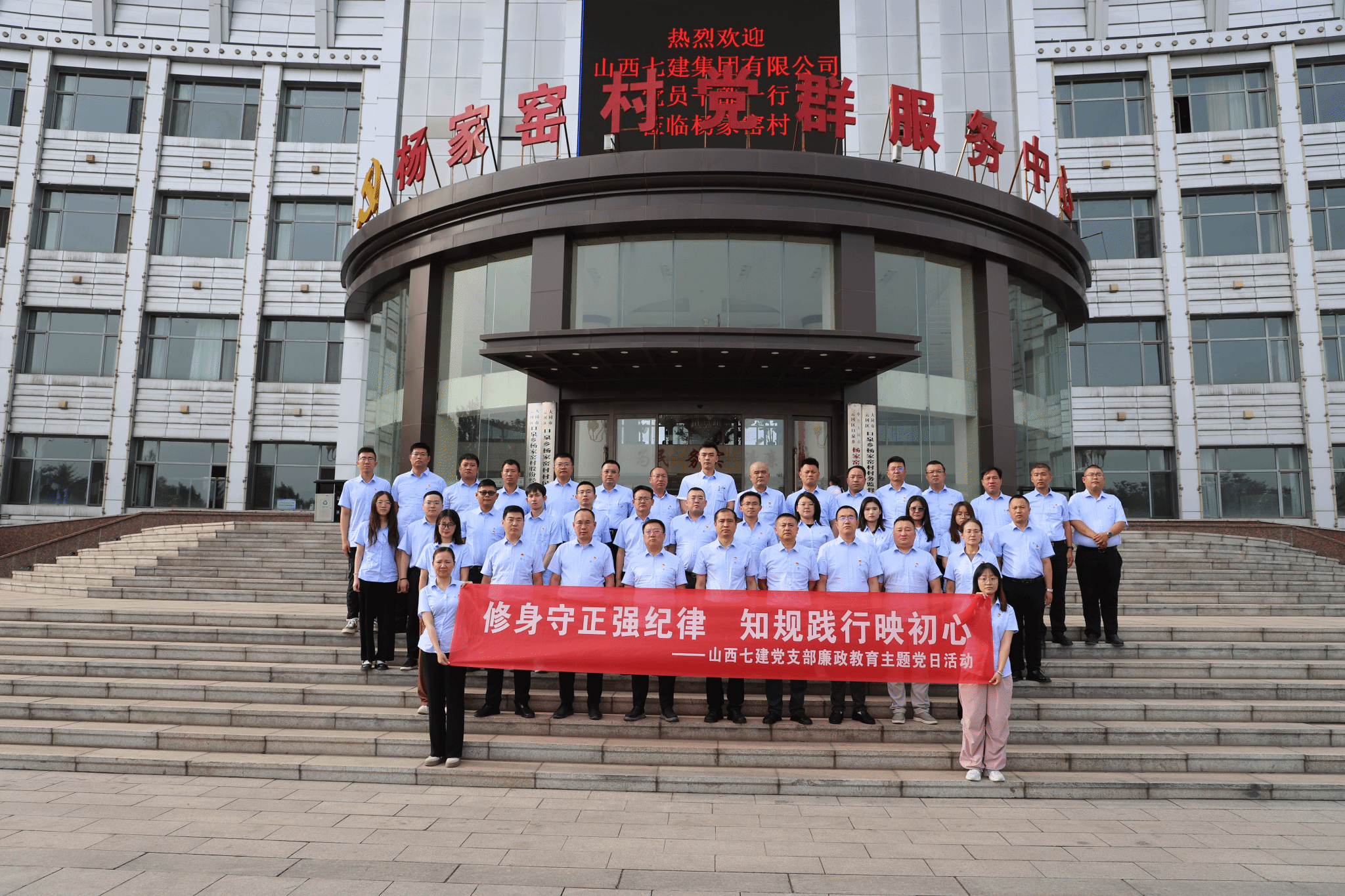 七建集團(tuán)組織黨員干部赴楊家窯村黨建廉政教育基地開展“修身守正強(qiáng)紀(jì)律 知規(guī)踐行映初心”主題黨日活動。全體黨員在教育基地宣誓廳整齊列隊(duì),面對鮮紅的黨旗,舉起右拳,重溫入黨誓詞。