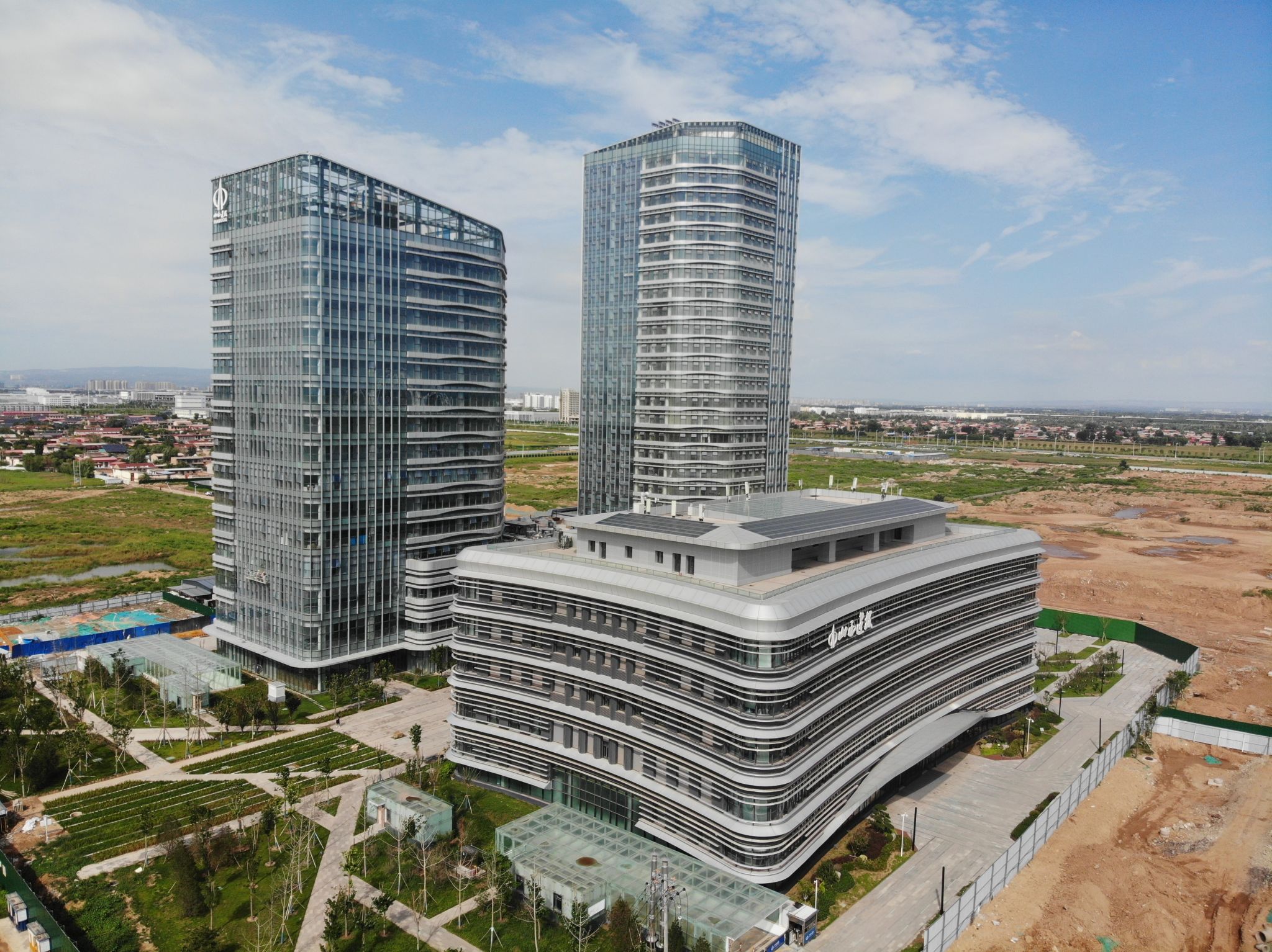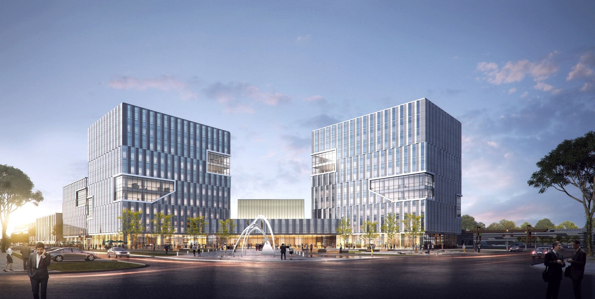 瀟河智慧建設運行總部——裝配式鋼框架等結構,其中A座裝配率91.5%。